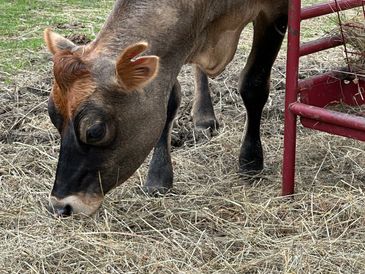 Pisces is the rebel of the dairy, and she doesn't want to conform to the dairy. She also thinks that she's a dog and likes to get up and personal with everybody.